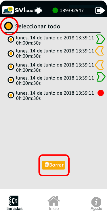 Si deseas eliminar del historial el registro de todas las llamadas, elige la opción “Seleccionar todas” y pulsa el botón “Borrar”.