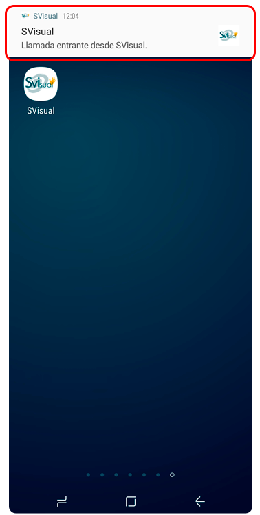 2 Si tienes la aplicación “SVIsual” abierta en segundo plano, al recibir una llamada tu smartphone o tableta comenzará a vibrar y en la parte superior de la pantalla verás un aviso de que tienes una llamada procedente de SVIsual. Para descolgar o rechazar la llamada, pulsa encima de ese cartel de aviso.