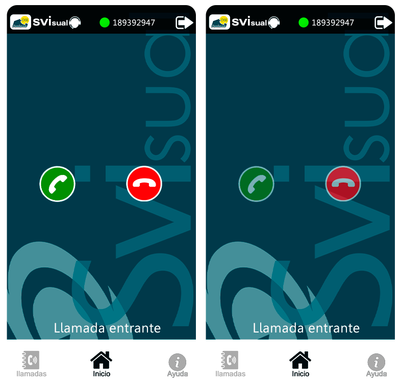 Al pulsar encima del cartel de aviso la aplicación “SVIsual” pasará a primer plano y mostrará dos botones parpadeando que te permitirán descolgar la llamada o rechazarla.