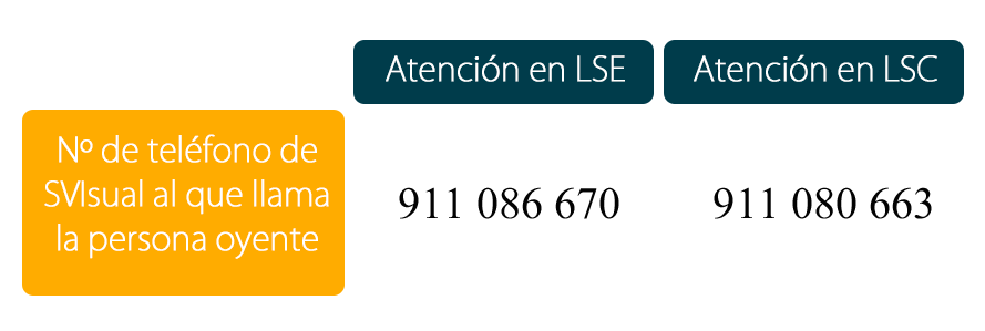 Además de conocer tu número de identificación, la persona oyente tendrá que realizar una llamada de voz al servicio de videointerpretación SVIsual. El número de teléfono al que tiene que llamar la persona oyente dependerá de si tú deseas recibir la llamada en lengua de signos española o en lengua de signos catalana.